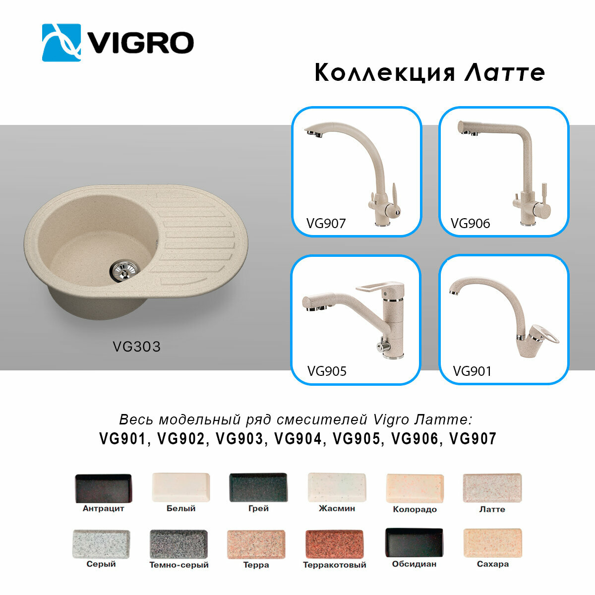 Мойка кухонная врезная Vigro VG303 обсидиан (740*490*200) 8 768 ₽ Подробнее