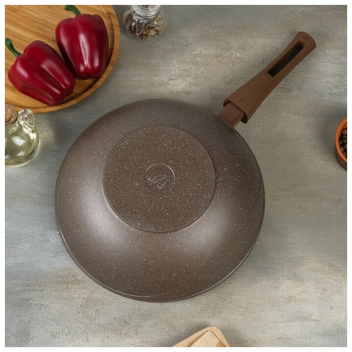 Сковородки Сковорода "Гранит Brown", 28 см, съёмная ручка, стеклянная крышка