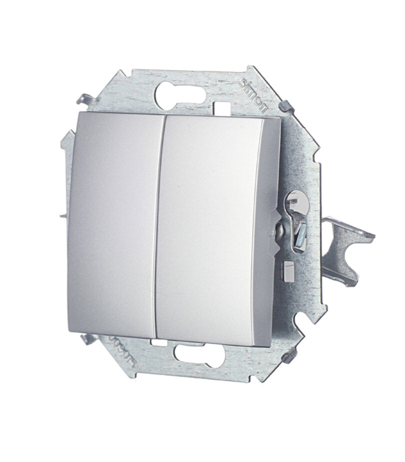 Переключатель Simon 15 двухклавишный встраиваемый алюминий (1591397-033)
