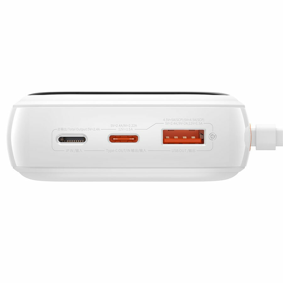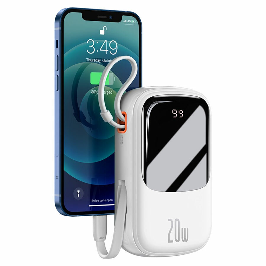 Powerbank аккумулятор Портативный аккумулятор BASEUS Qpow Pro Digital Display, встроенный кабель Lightning, 3A, 20000 мА⋅ч, белый