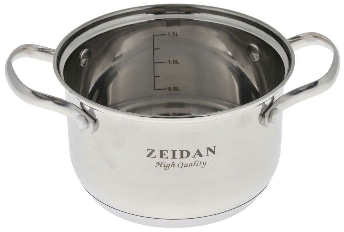 Кастрюля 2.1 л нержавеющая сталь с крышкой, индукционная Zeidan Milan, с толстым дном 2.1 литра