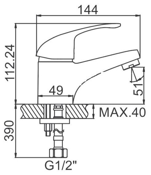Смеситель для умывальника, карт.40мм, шпиль Ledeme, 1/10; L1029-B