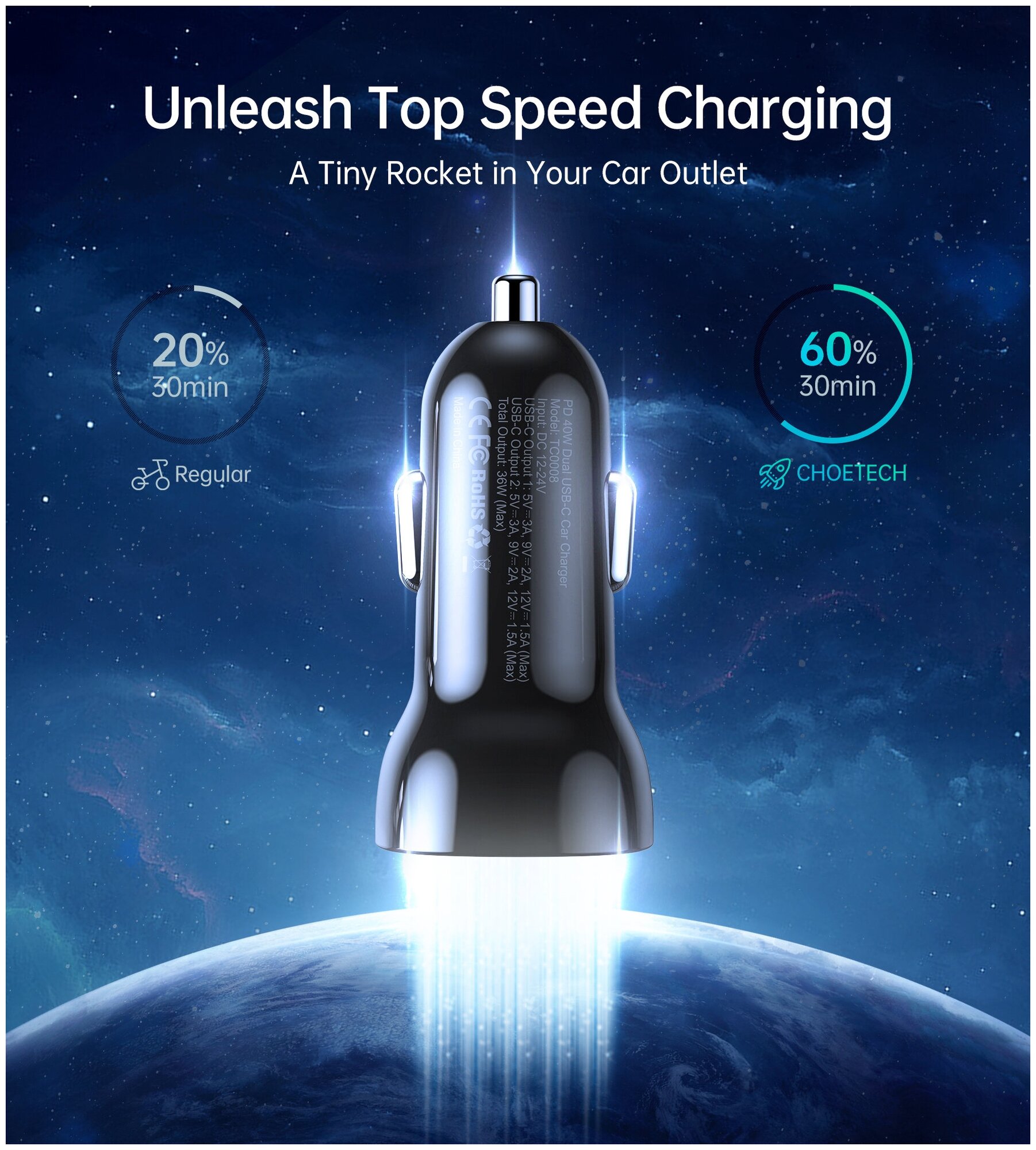 Зарядки для гаджетов Автомобильное зарядное устройство Choetech 40 Вт 2xUSB C (TC0008-V2)