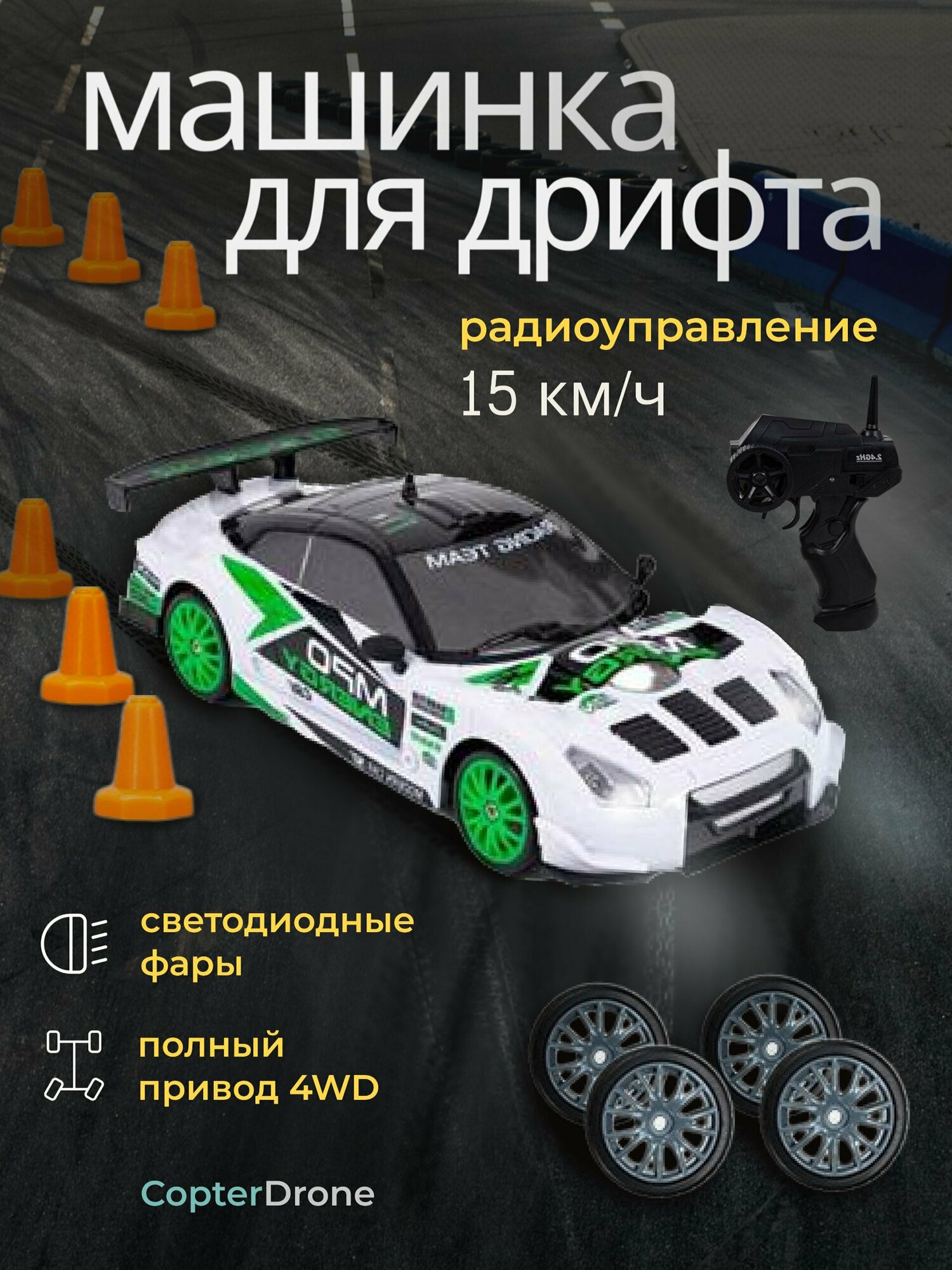 Радиоуправляемая машина для дрифта Nissan GT-R (19 см, 15 км/ч, сменные колеса, фишки) - SC24A08