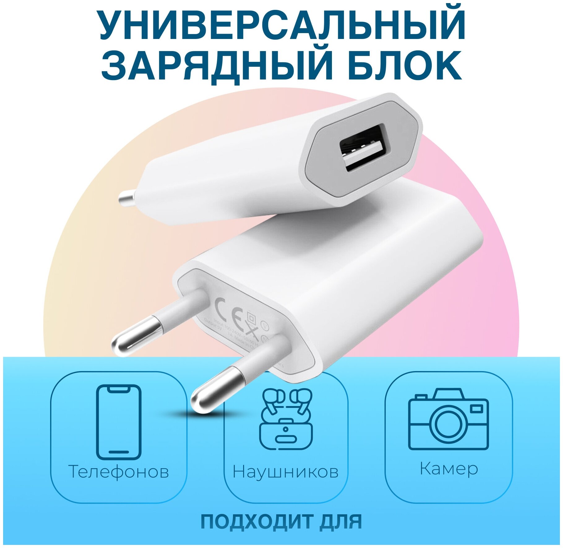 Зарядка универсальная USB 1A / Адаптер питания / Блок зарядка для iPhone и на Android / Вилка