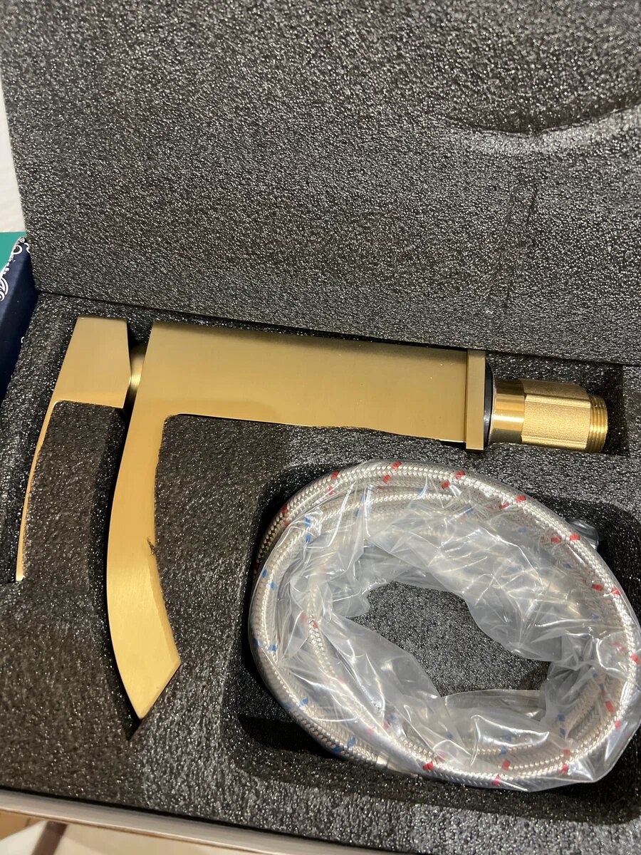 Cмеситель для раковины Grocenberg GB2007 Золото. Керамический картридж, гибкая подводка, латунь