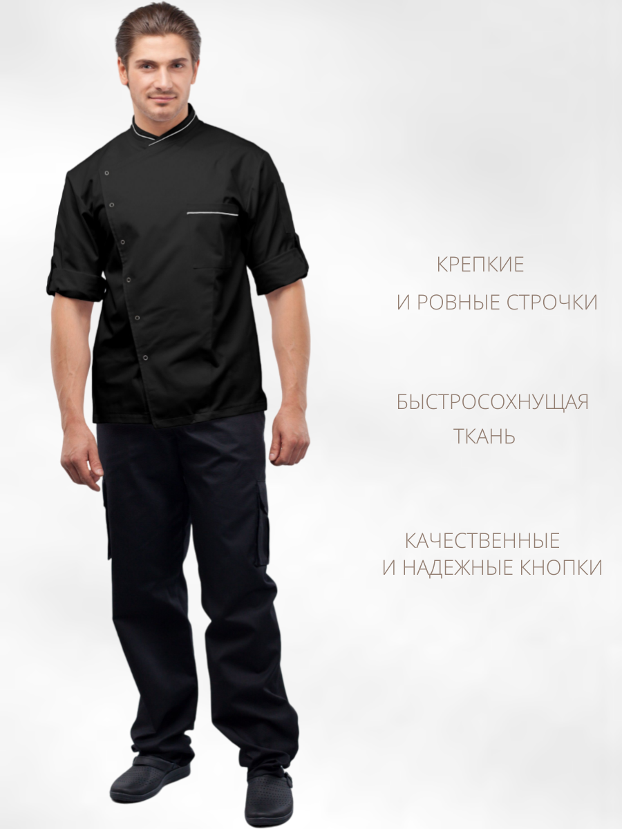 Куртка для повара мужская/Китель поварской мужской Uniforms (цвет чёрный с белым кантом, 42 размер)