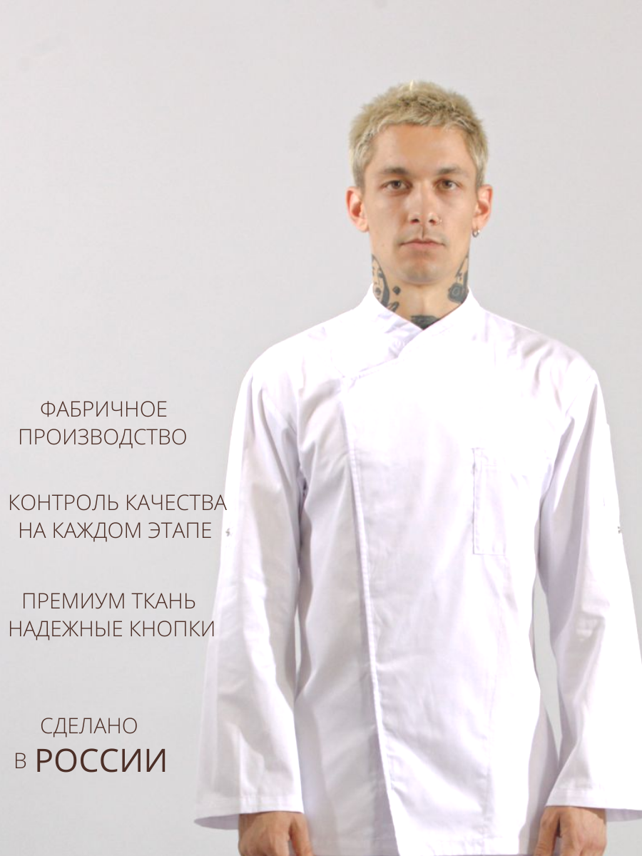 Поварские наборы Китель поварской мужской белый,длинный рукав,48 размер(173-179 см)