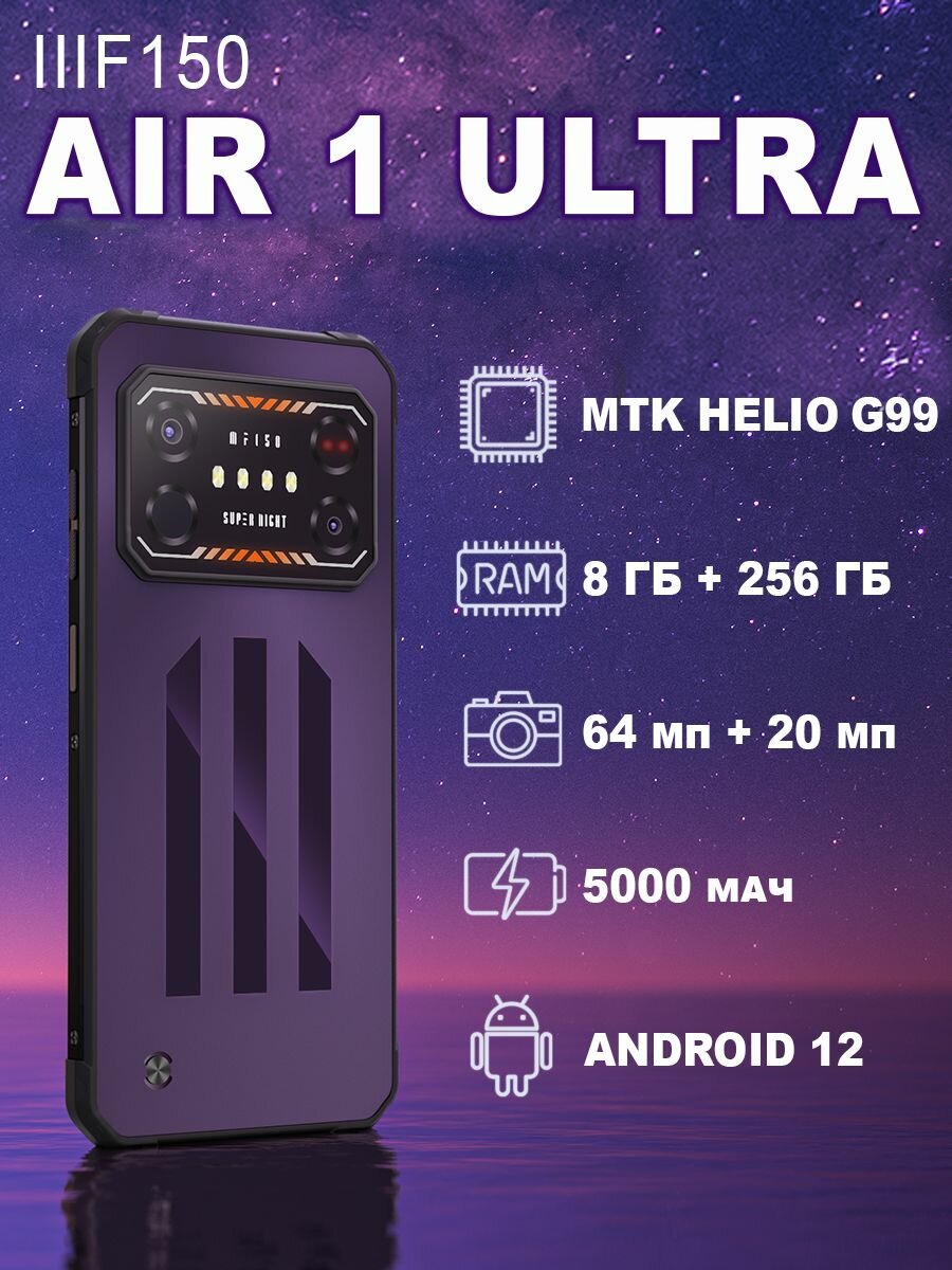 Смартфон IIIF150 Air1 Ultra, 8ГБ ОЗУ/256ГБ ПЗУ, 6,8", Android 12, камера 64МП, NFC, IP68 21 700 ₽ Подробнее