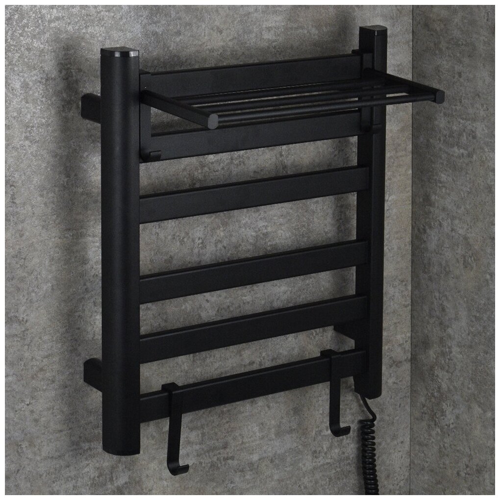 Полотенцесушители Полотенцесушитель электрический BRIMIX чёрный лесенка с полкой , 600 х 500 х 270 мм на 5 плоских перекладин, 160 W, из алюминия, тэн из углеродного волокна, код: 08091B