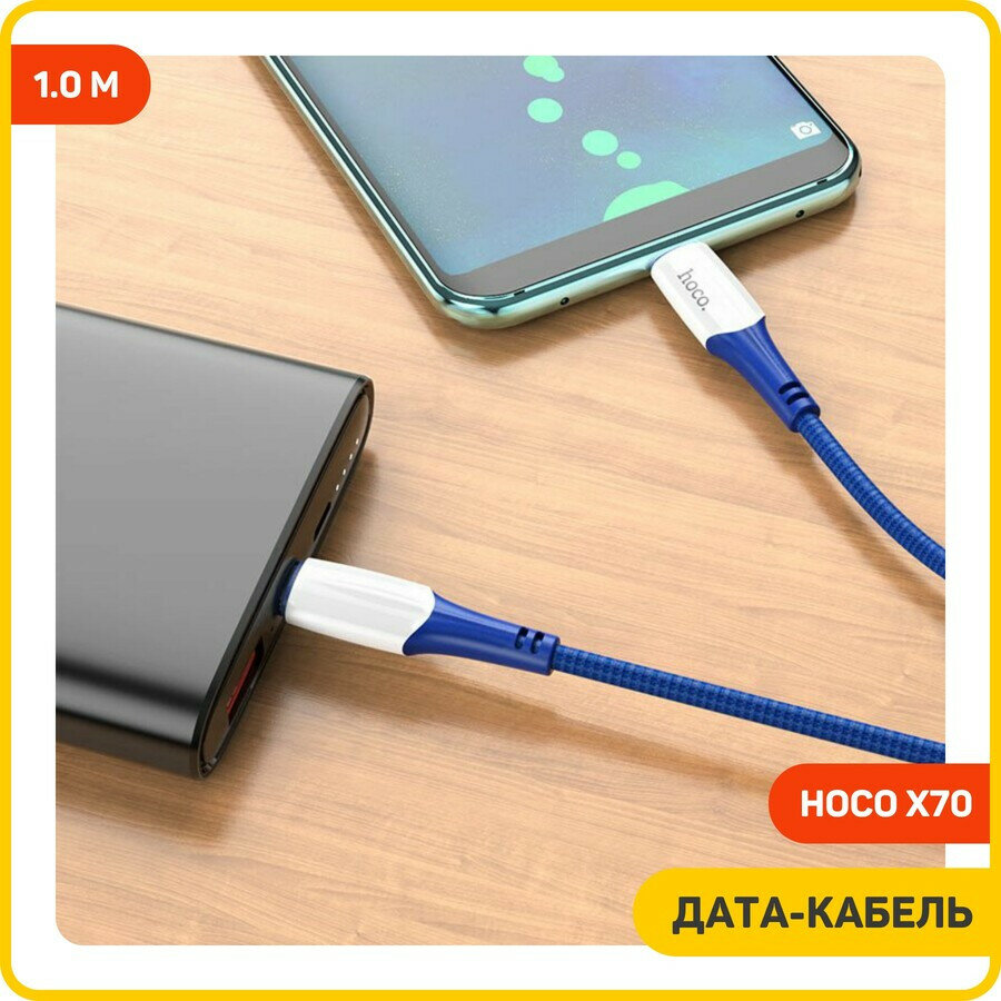 Кабель Type-C на Type-C, HOCO, X70, 1м, 60W, синий