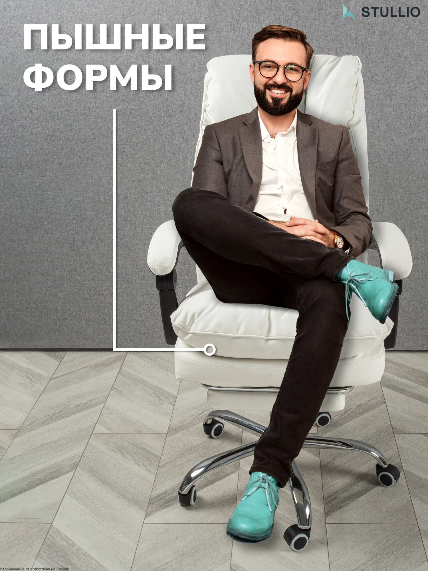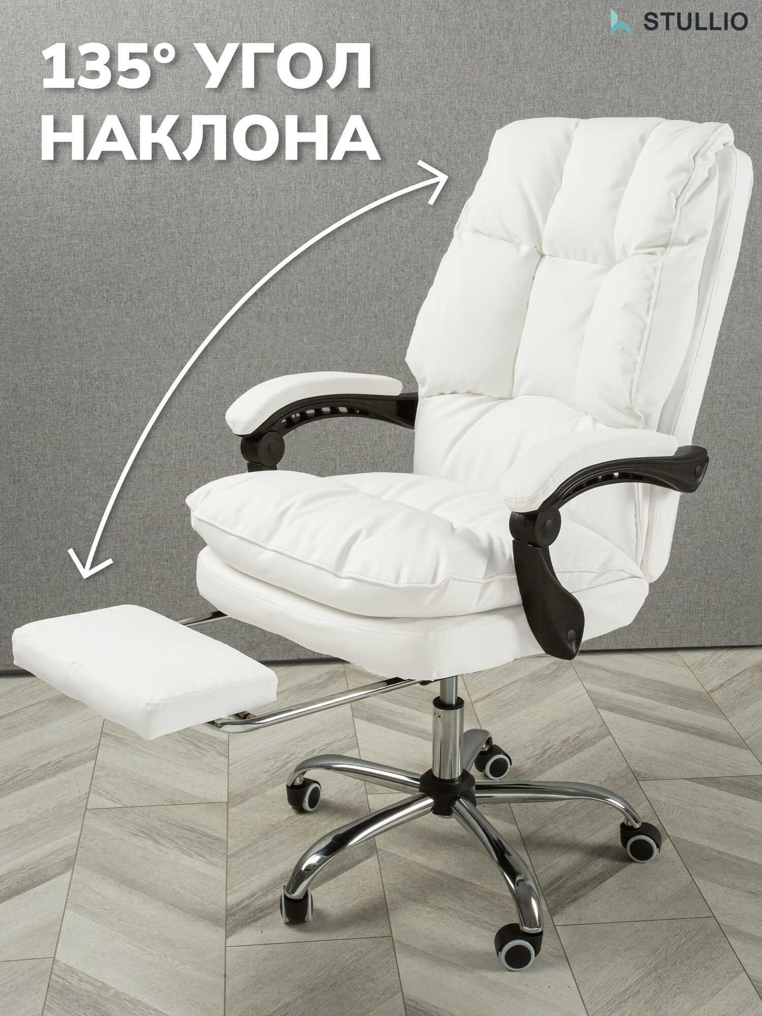 Компьютерные кресла Мягкое компьютерное кресло для дома и офиса, с подставкой для ног, из экокожи, цвет белый