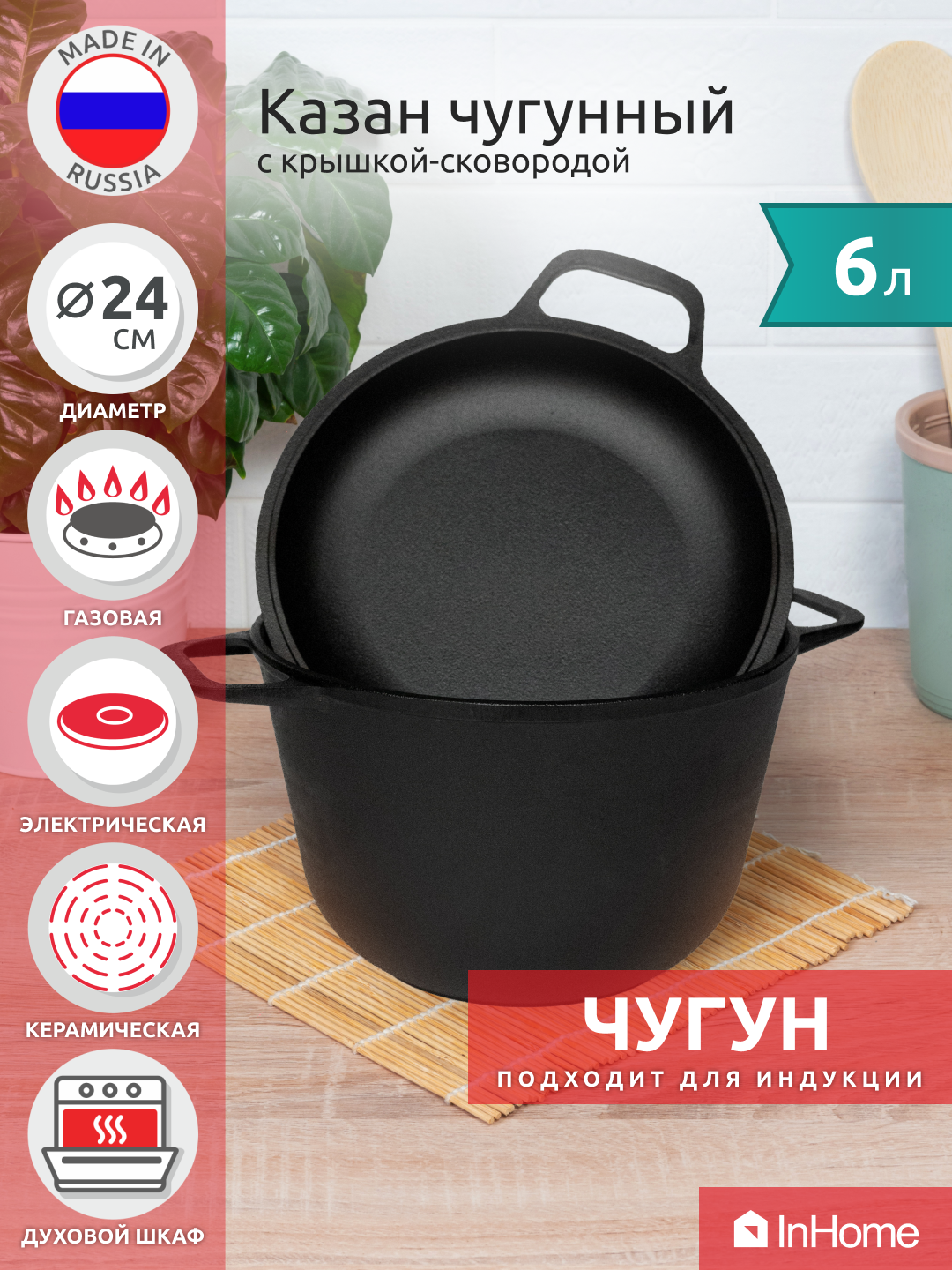Кастрюля чугунная с крышкой-сковородой на 6 л. 4 308 ₽ Подробнее