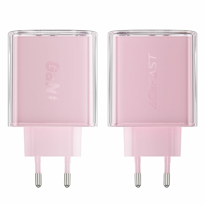 Зарядки для гаджетов Сетевое зарядное устройство ACEFAST A45 Sparkling series PD65W GaN (2*USB-C+USB-A) charger (EU). Цвет: нежно-розовый