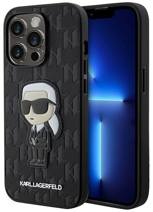 Чехлы для мобильных телефонов Чехол Lagerfeld PU Saffiano Monogram NFT Karl Ikonik Hard для iPhone 14 Pro Max, черный