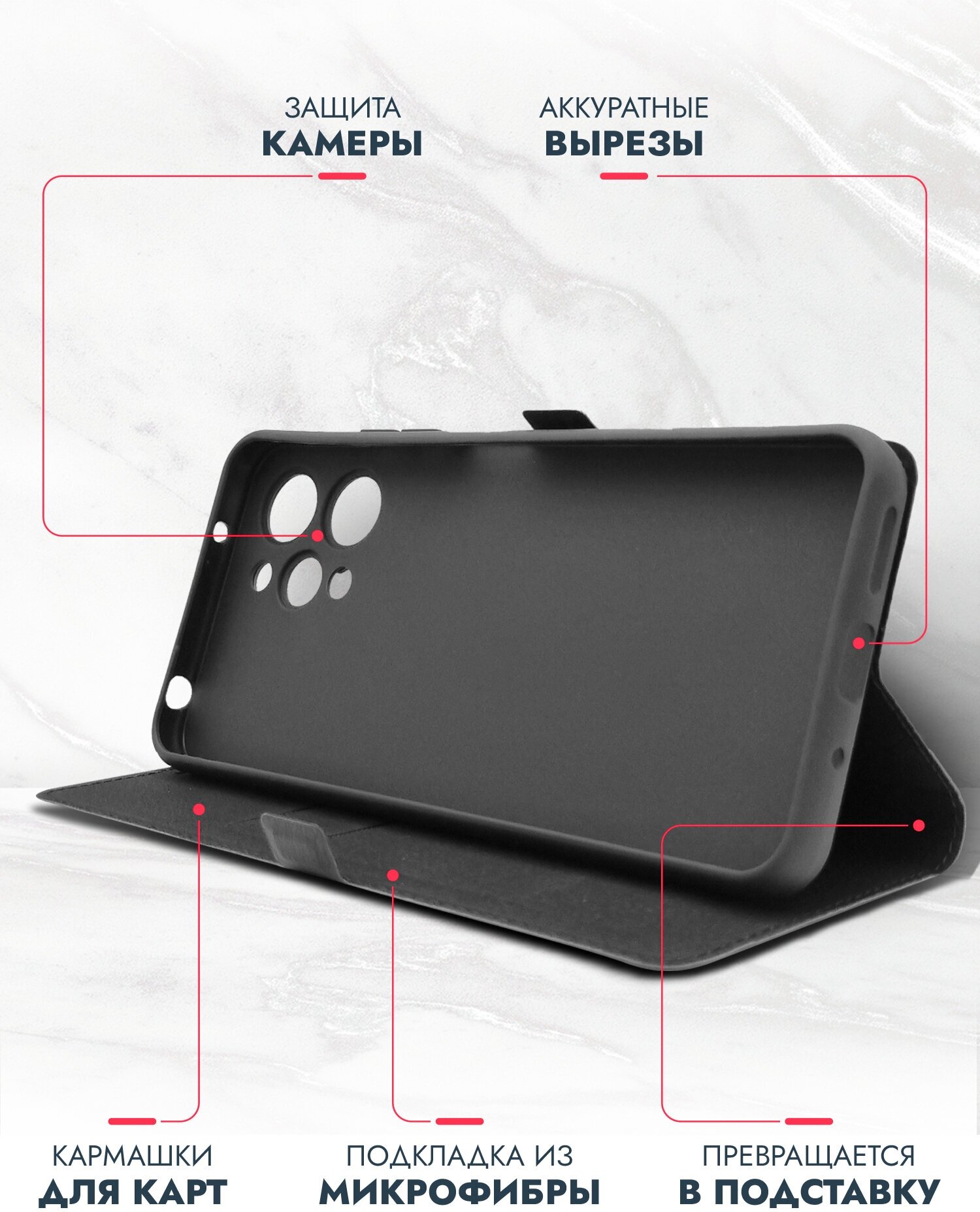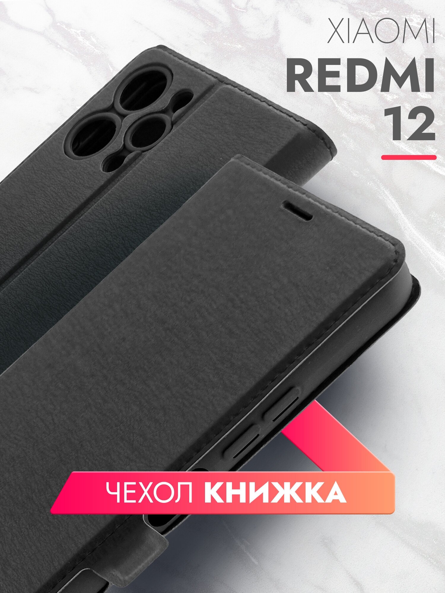 Чехлы для мобильных телефонов Чехол на Xiaomi Redmi 12 (Ксиоми Редми 12) черный книжка эко-кожа с функцией подставки отделением для пластиковых карт и магнитами Book case, Brozo