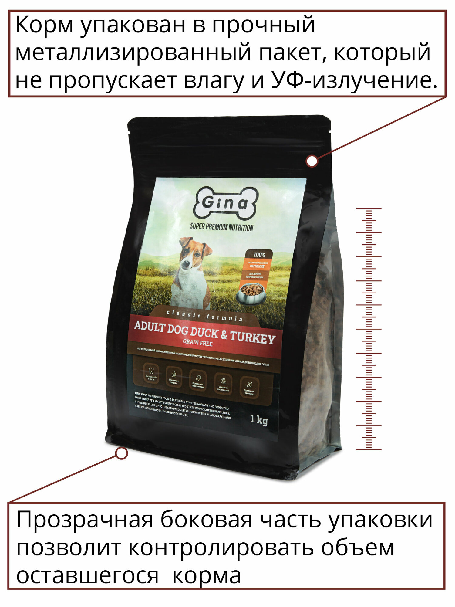 Корм для собак GINA CLASSIC GRAIN FREE ADULT DOG DUCK & TURKEY беззерновой для взрослых собак с уткой и индейкой (1 кг)