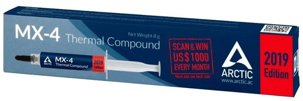 Термопаста ARCTIC MX-4 ACTCP00002B 4г, шприц, теплопроводность 8.5 Вт/мК, вязкость 870 пуаз, плотность 2.5 г/см³