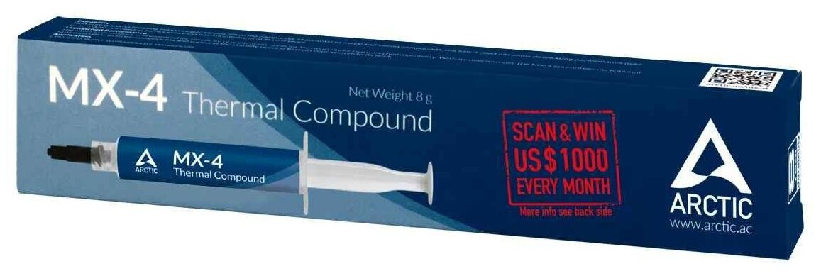 Термопаста ARCTIC MX-4 ACTCP00002B 4г, шприц, теплопроводность 8.5 Вт/мК, вязкость 870 пуаз, плотность 2.5 г/см³