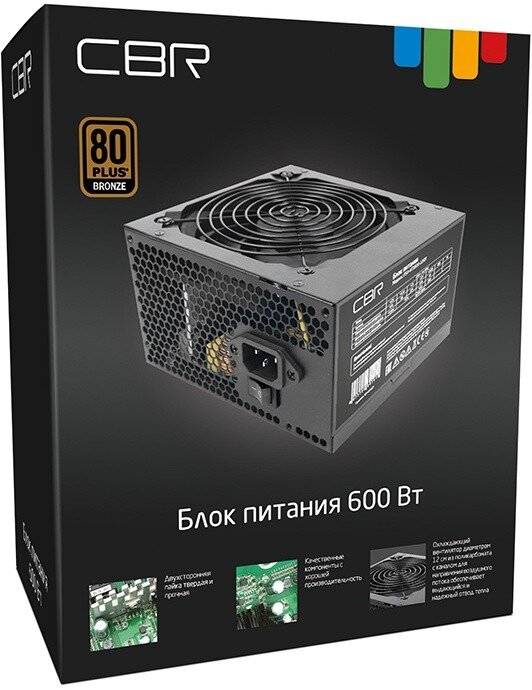 Блоки питания Блок Питания CBR ATX 600W 80+ Bronze, APFC, 0.6mm, 20+4pin, 1*8-pin(4+4P), 2*6+2pin, 6*SATA, 4*IDE, 12cm fan, 1.5м кабель питания, черный [PSU-ATX600-12GM]