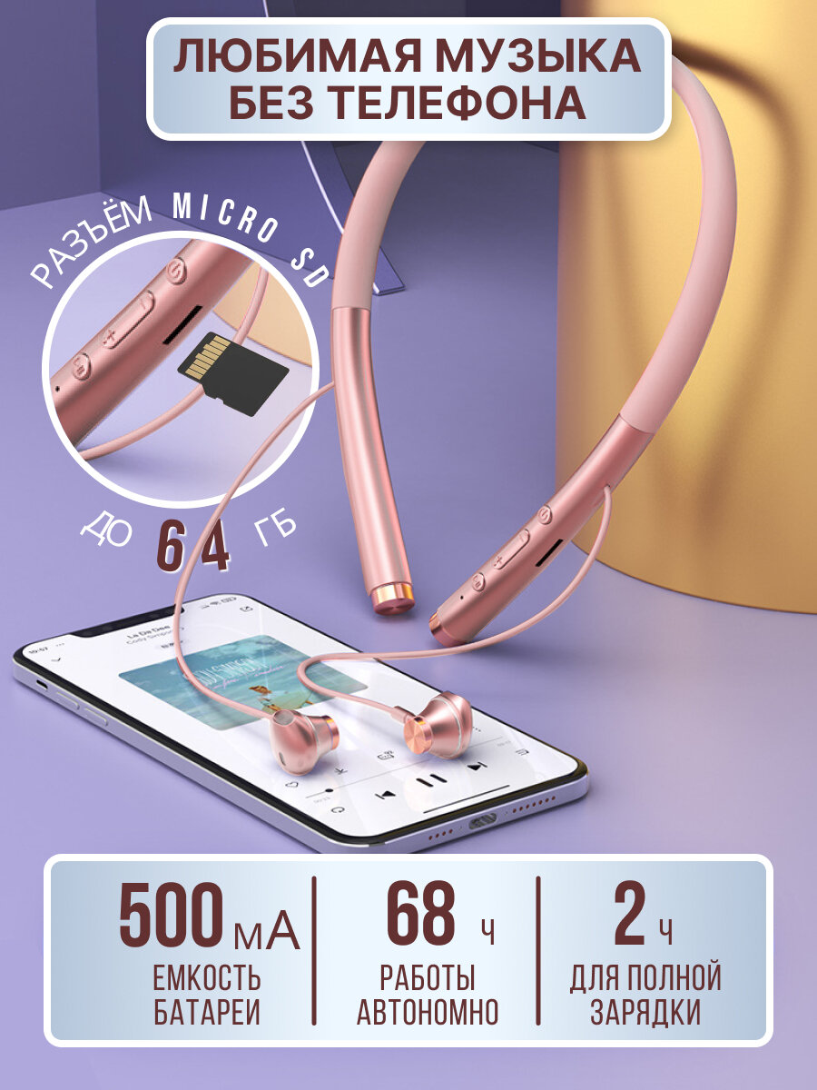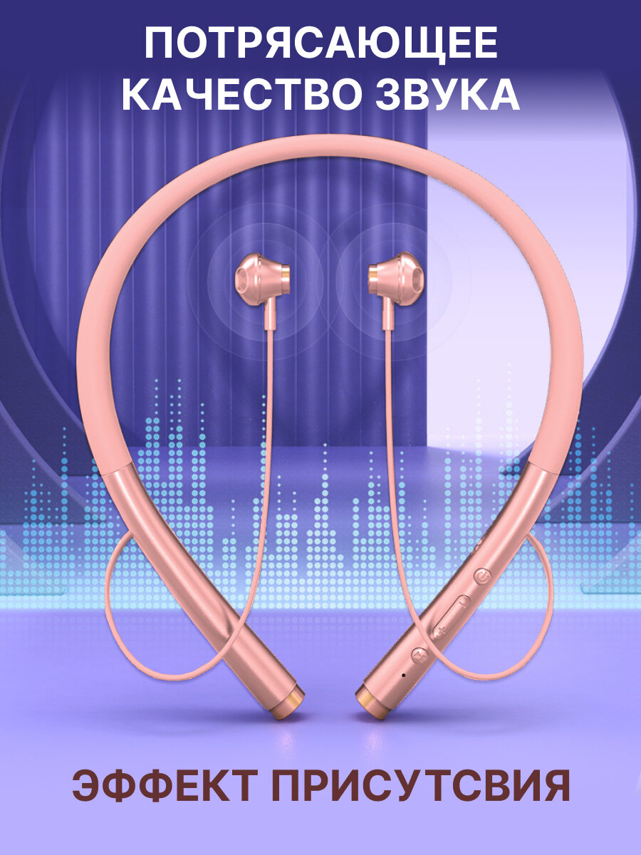 Наушники Наушники беспроводные блютуз с микрофоном спортивные для бега на шею (WI розовые)
