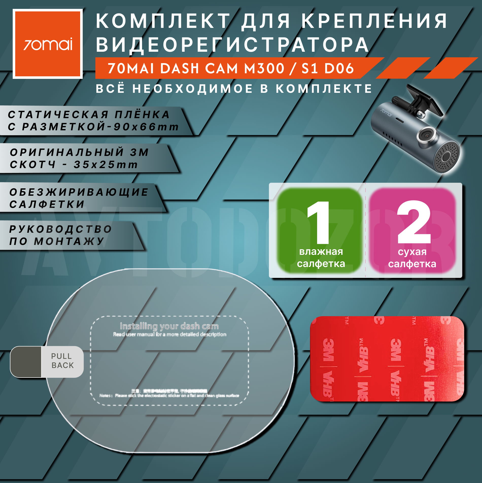 Видеорегистраторы Электростатическая плёнка для крепления автомобильного видеорегистратора 70mai M300 / D06