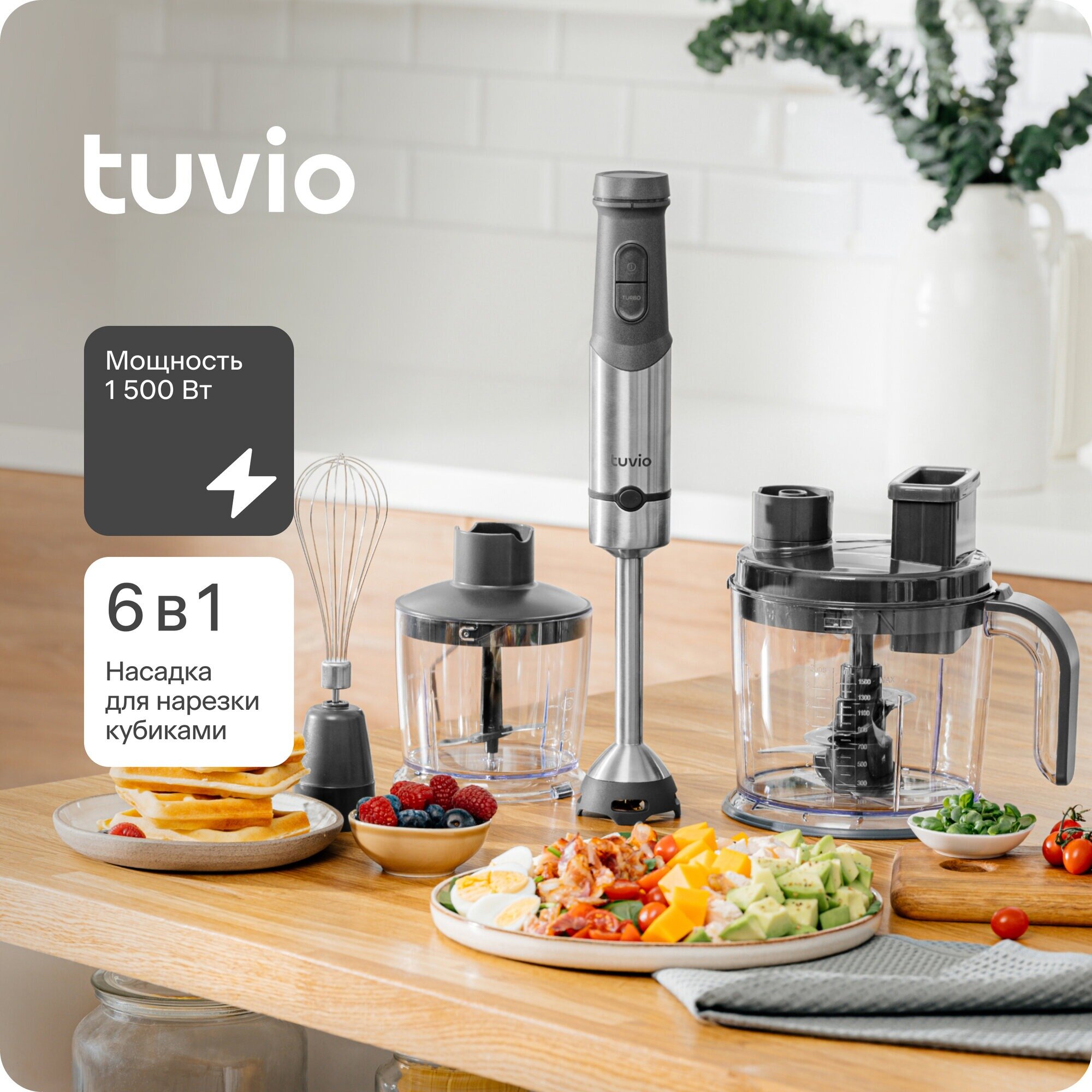 Миксеры и блендеры Блендер погружной Tuvio THB04MFP с кухонным комбайном, серый