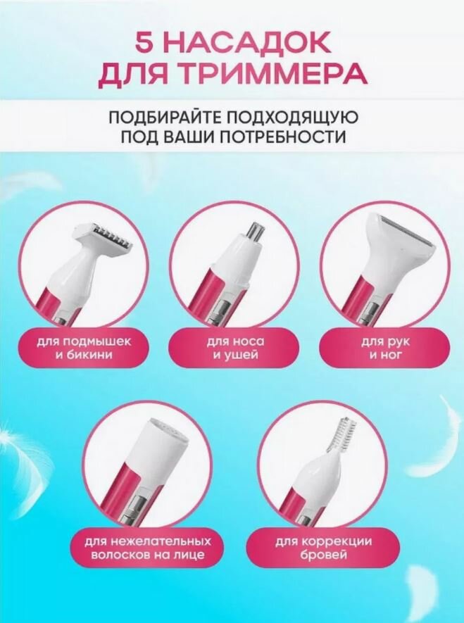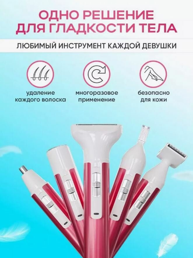 Эпиляторы Триммер женский 5-в-1 с насадками, электробритва, триммер, бритва для тела