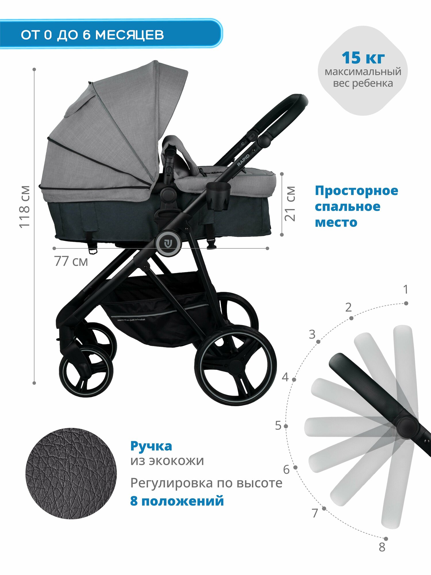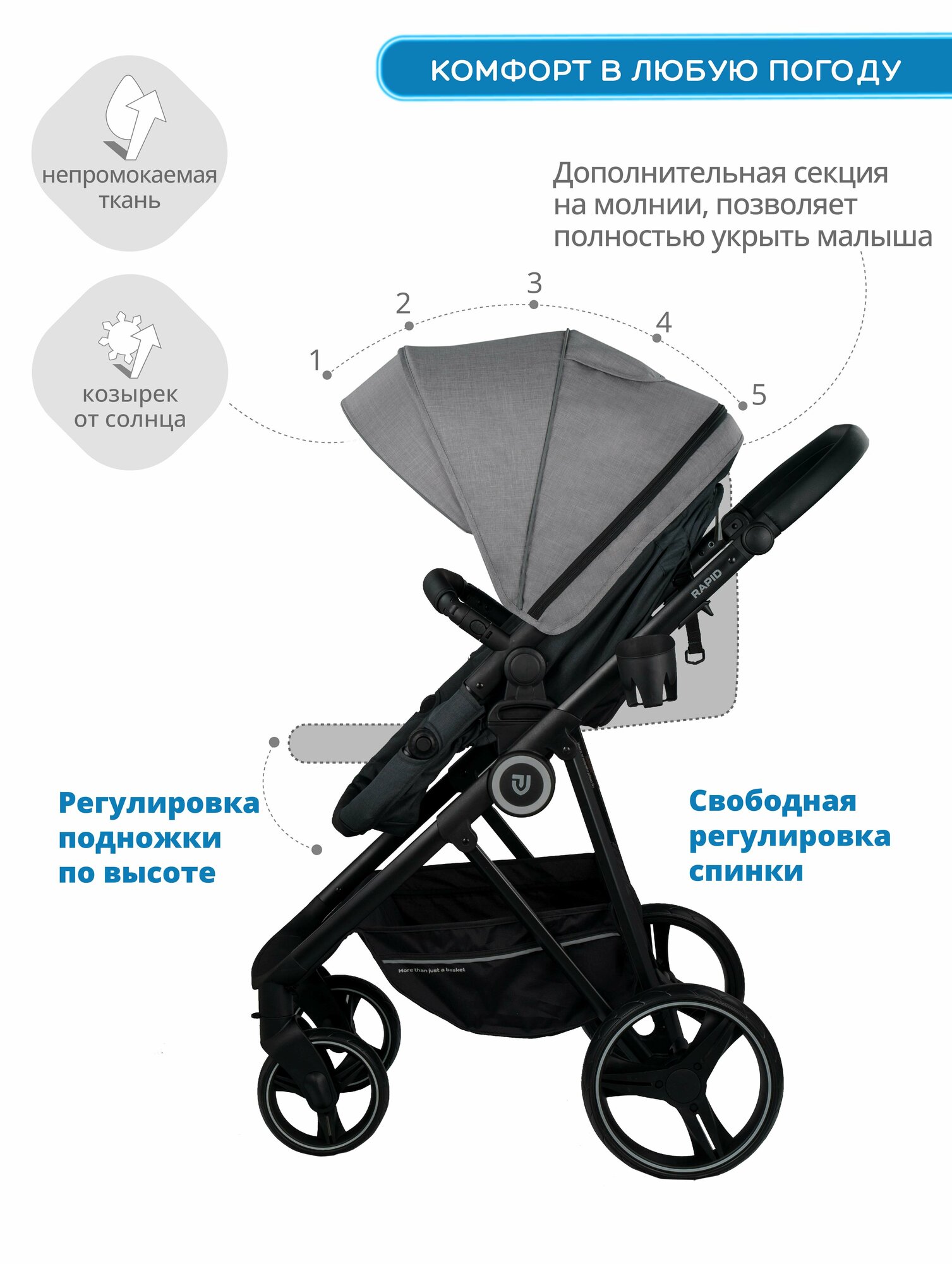 Коляска-трансформер Jovola Rapid универсальная 2 в 1, всесезонная, св. серый-т. серый 16 165 ₽ Подробнее