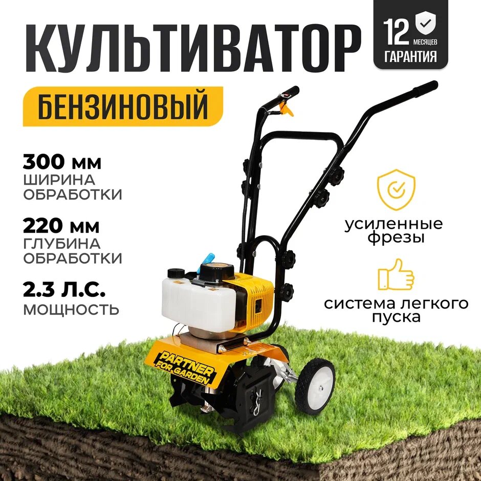 Мотоблоки и культиваторы Культиватор бензиновый / Культиватор / Мотокультиватор бензиновый / Мотокультиватор / Мототяпка бензиновая Partner for Garden MT-520 ( 2,3 Л,с ширина обработки 300мм, Глубина обработки 220 мм )