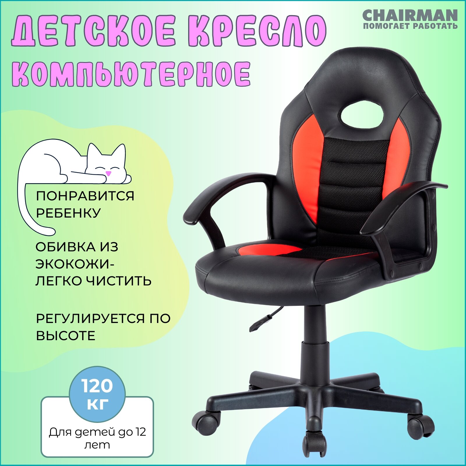 Компьютерные кресла Детское компьютерное кресло CHAIRMAN CH111, экокожа, черный/красный