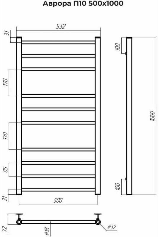 Полотенцесушители Полотенцесушитель TERMINUS Аврора П10 500*1000 мм