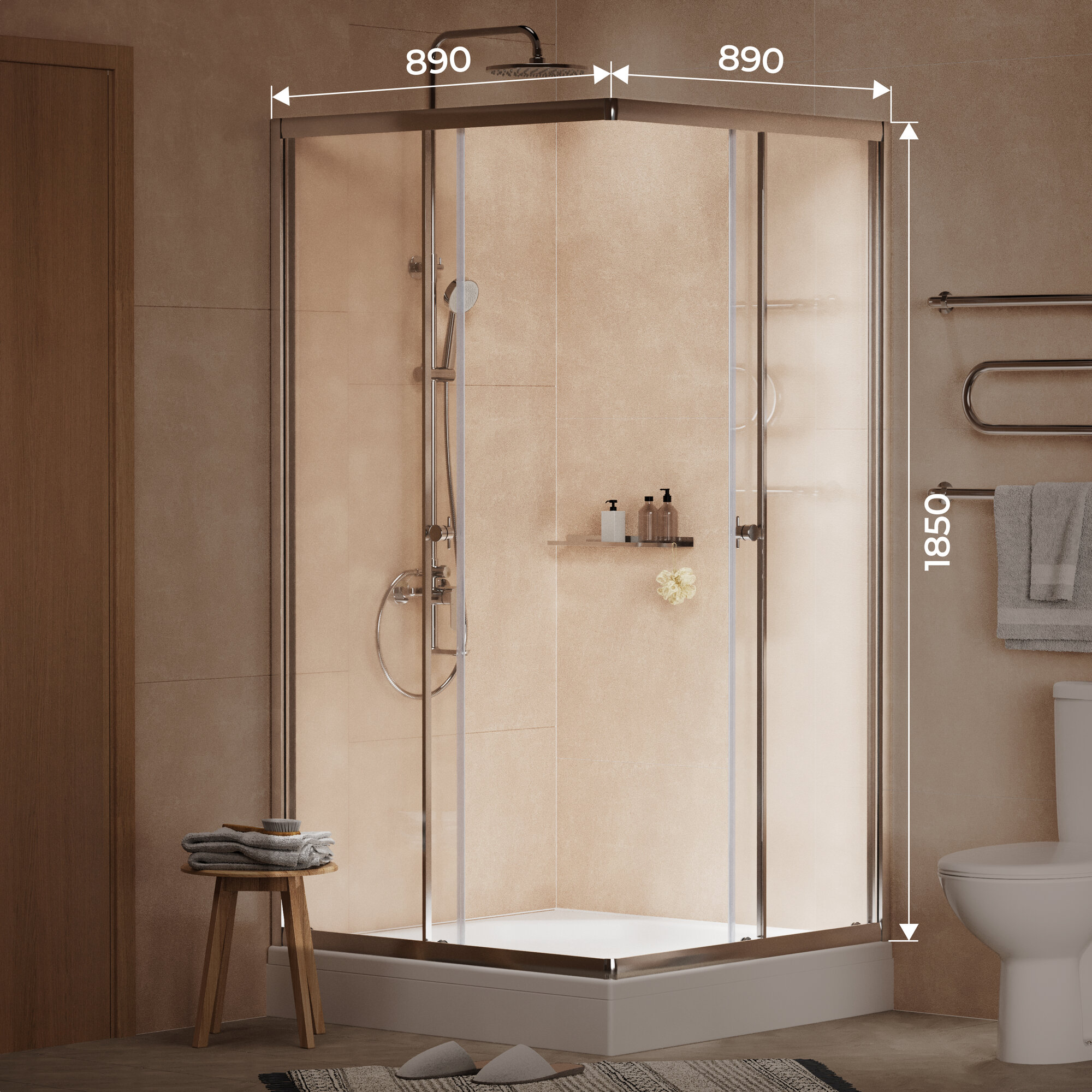 Душевое ограждение Homsly, хром, квадратное 100*100 см, коллекция Basic, 4H-012-CS10-BSC