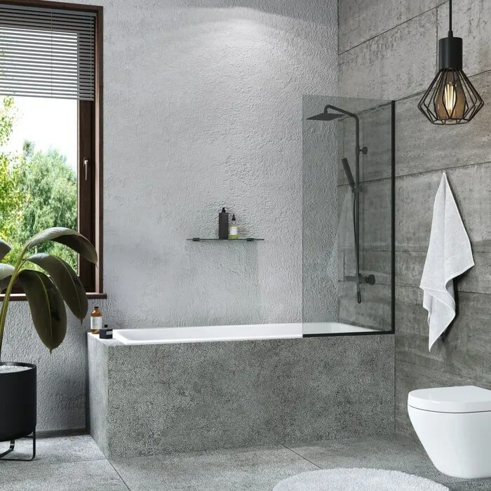 Душевые перегородки и стенки Стеклянная перегородка, ширма на борт ванны Reflexion RX14050CBL-01 140х50см фиксированная, прозрачное закаленное стекло 8мм, черный профиль