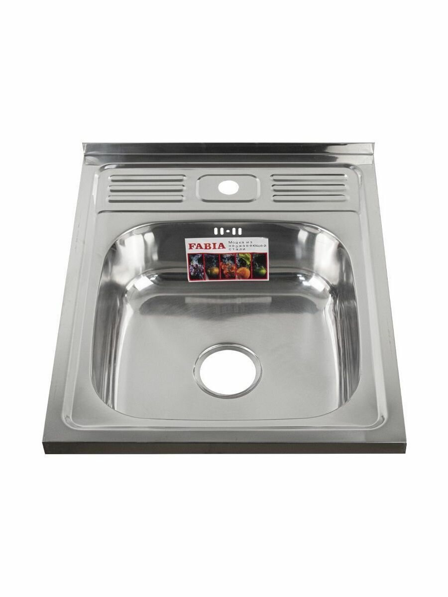 Кухонные мойки FABIA - Мойка накладная 50х60 см, толщина 0,6 мм, глубина 160 мм + большой сифон с переливом 62272