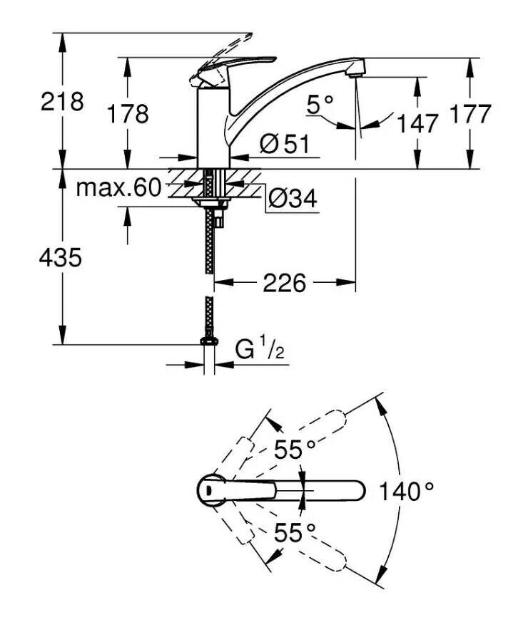 | Подвод воды | шланги / 535 мм / G 3/8" |