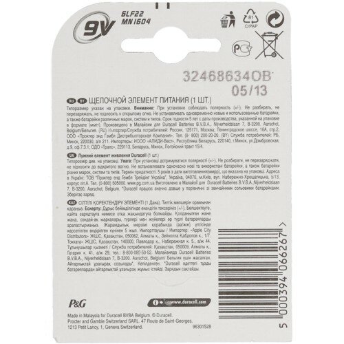 Лучшие цены. Вам требуется мощный элемент питания, который будет долгое время обеспечивать энергией ваше устройство? Для этого отлично подойдет щелочная батарейка 9V крона DURACELL 6LR61-1BL в блистере. Сейчас такие батарейки используются гораздо реже, чем раньше. Однако вы все еще можете встретить такие батарейки в некоторых устройствах: в пультах управления игрушек, машинок и вертолетов, в рациях и радиомикрофонах. Емкость щелочной батарейки в несколько раз больше, чем у любых других батареек. Магазины в вашем городе.