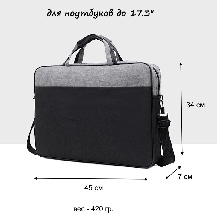 Сумки для ноутбуков Сумка для ноутбука до 17.3", сумка для ноутбука и документов с ремнем черная
