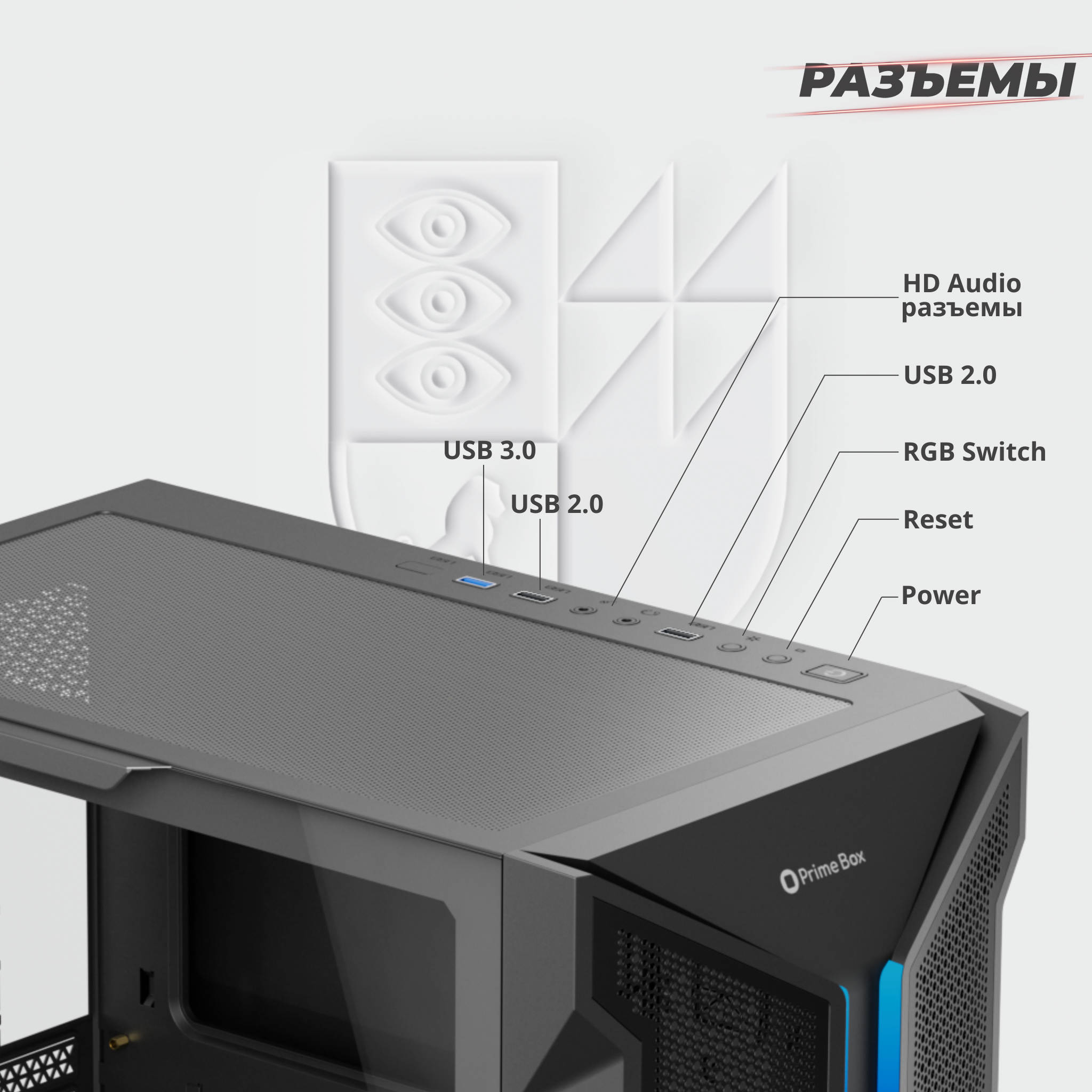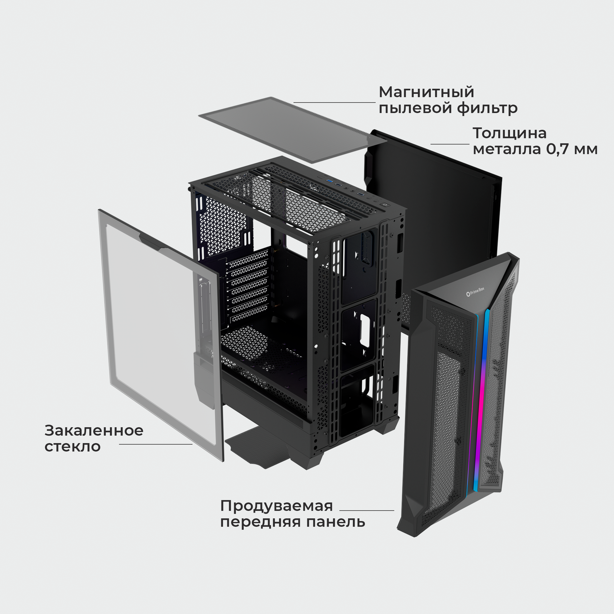 Корпуса Корпус Prime Box PREDATOR V8 Black + закаленное стекло + RGB подсветка, ATX