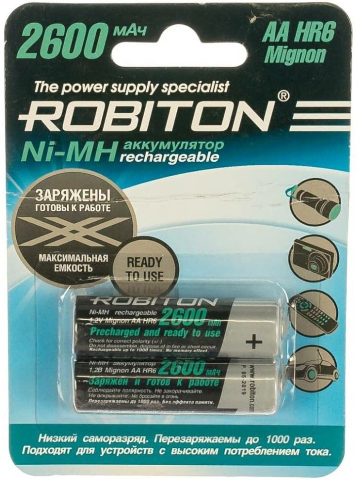 Аккумуляторы и батарейки Robiton Аккумулятор Robiton Ni-MH AA 2600mAh BL2, 2шт (RTU2600MH-2)