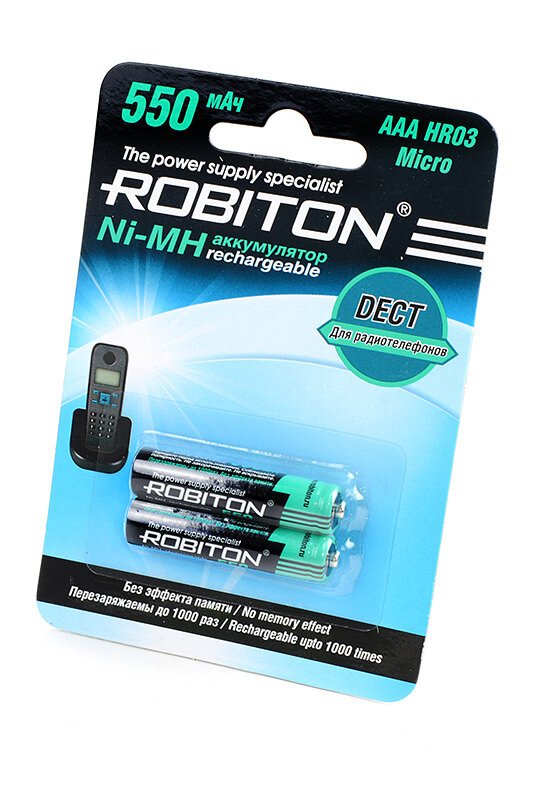Ni-Mh аккумуляторы ROBITON DECT 550MHAAA-2 BL-2 13903, 1.2В, 550мАч, размер ААА (HR03), металлогидридные, для радиотелефона, 2шт