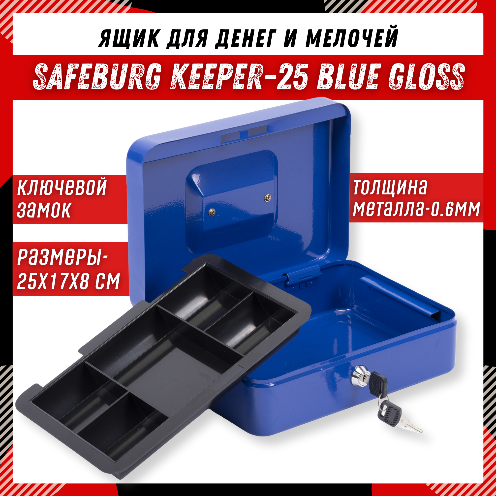 Ящик для денег SAFEBURG Keeper-25C Blue Gloss, переносной сейф/кэшбокс, лоток 3 отделения 1 957 ₽ Подробнее