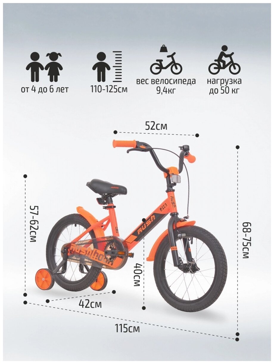Детский велосипед Rush Hour 16" J16 оранжевый