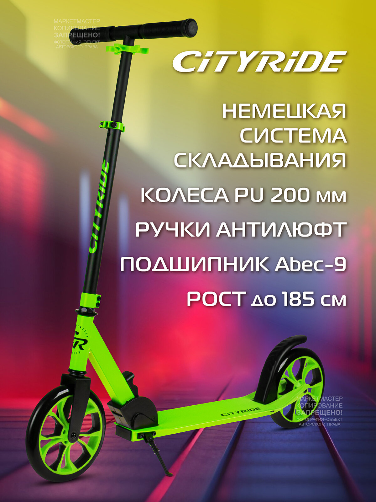Самокат Самокат двухколесный CITYRIDE, складной, для детей/подростков, колеса PU 200/200, подножка, CR-S2-01NGN