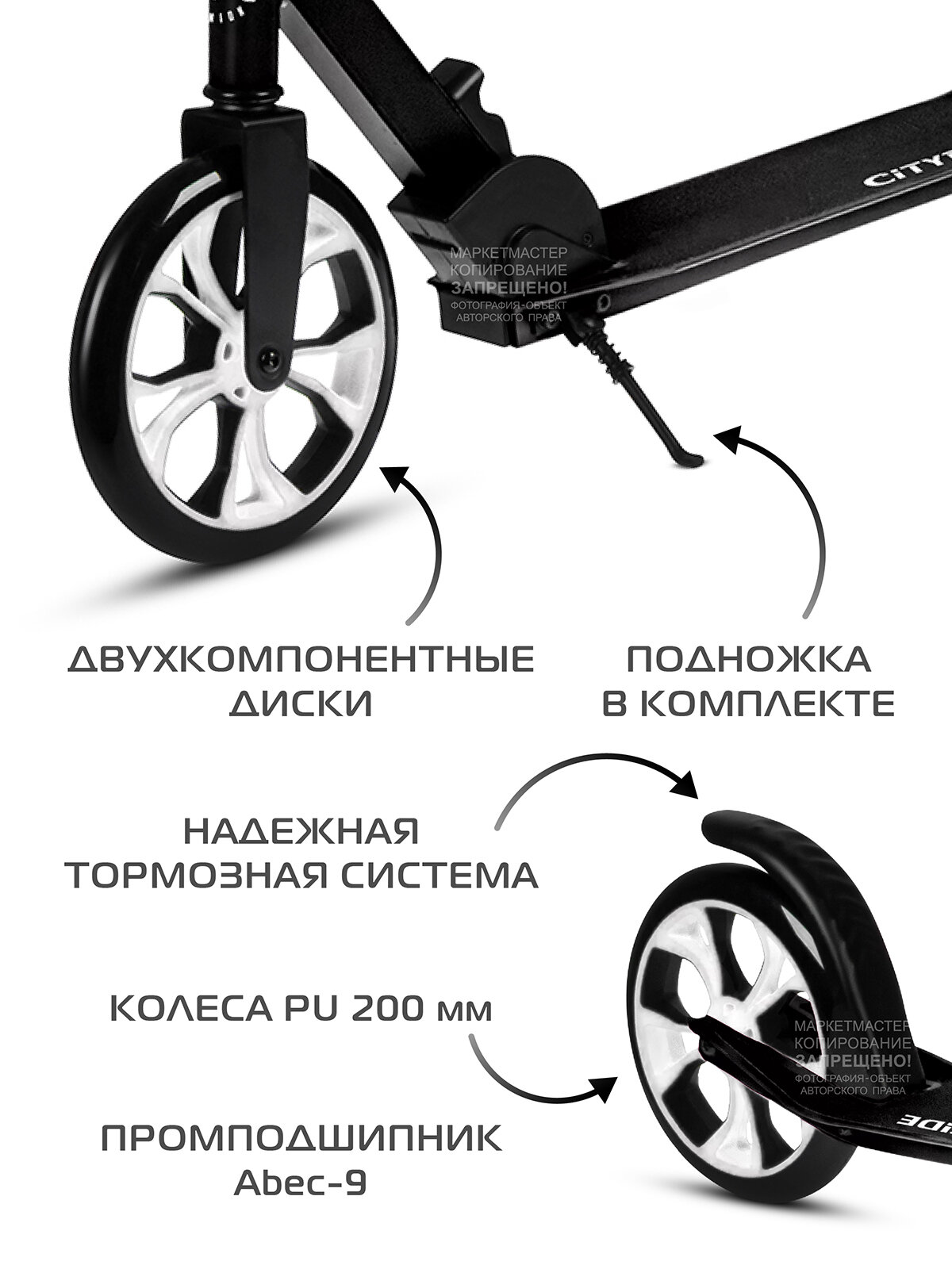 Самокат двухколесный CITY-RIDE, дека, алюминий анодированный, t-bar сталь, колеса PU 200/200, подножка, цвет черный 4 990 ₽ Подробнее