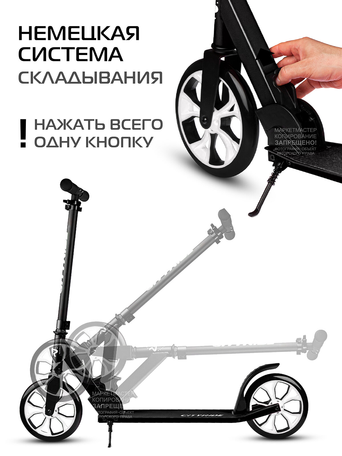 Самокат Самокат двухколесный CITYRIDE, складной, для детей/подростков, колеса PU 200/200, подножка, CR-S2-01NEB