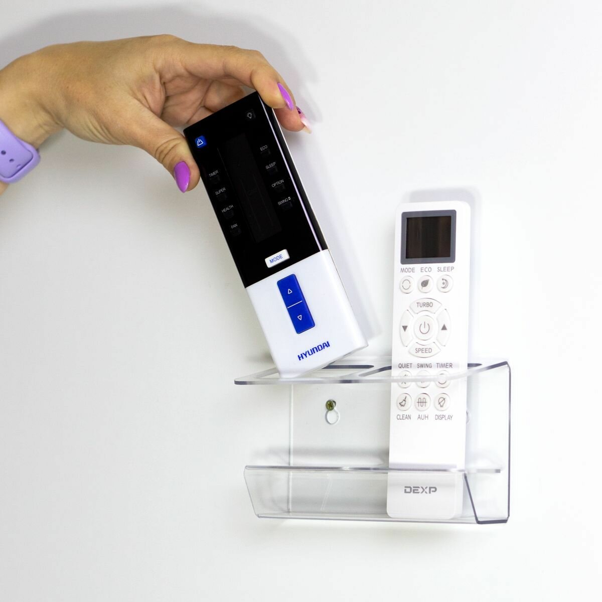 Подставки и крепления Держатель для пультов на стену с 2-мя ячейками, прозрачный, размер 140х80х60 мм / Подставка для 2-ух пультов