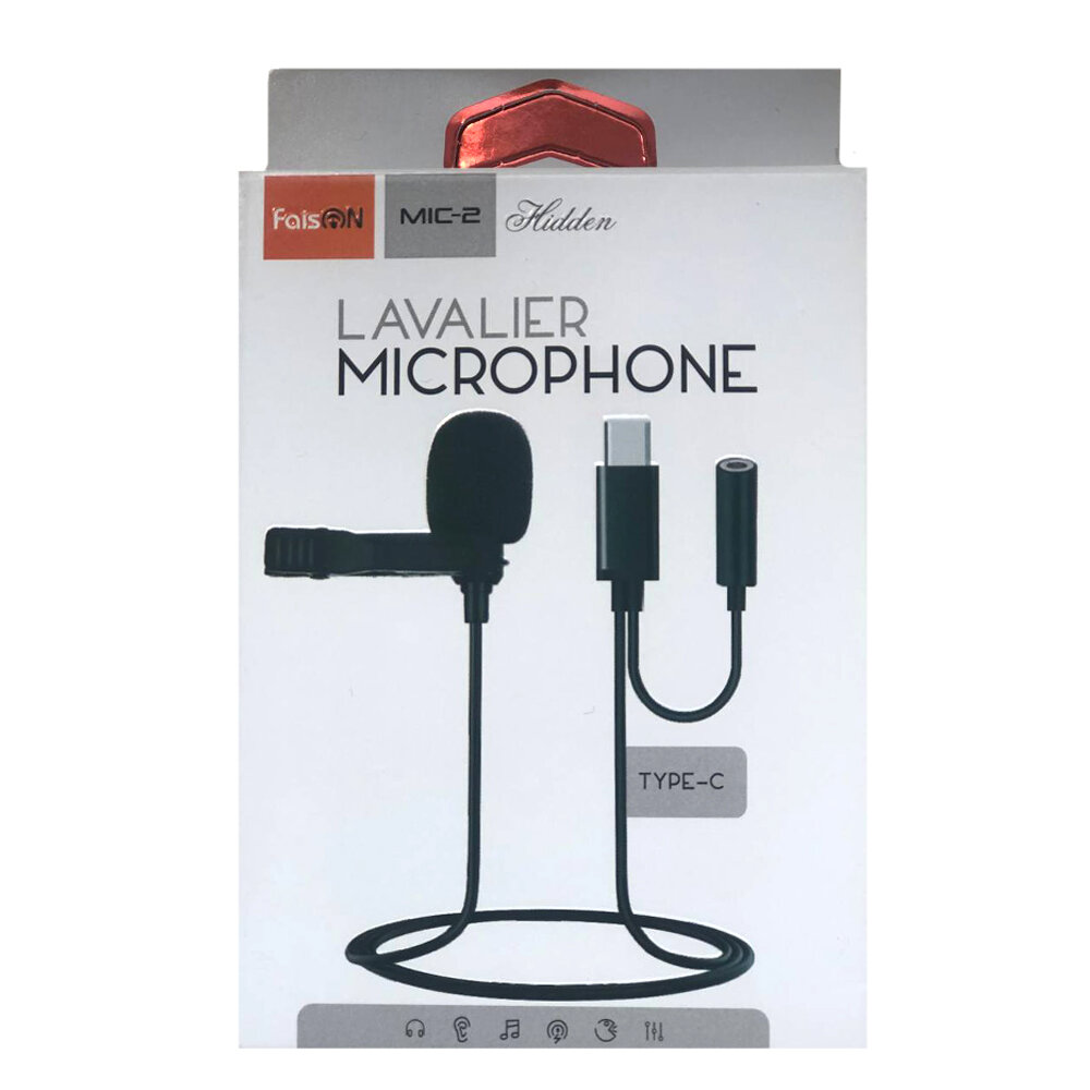 Микрофоны Петличный микрофон FaisON Mic-2 AUX 3.5/Type-C, 1 м, черный