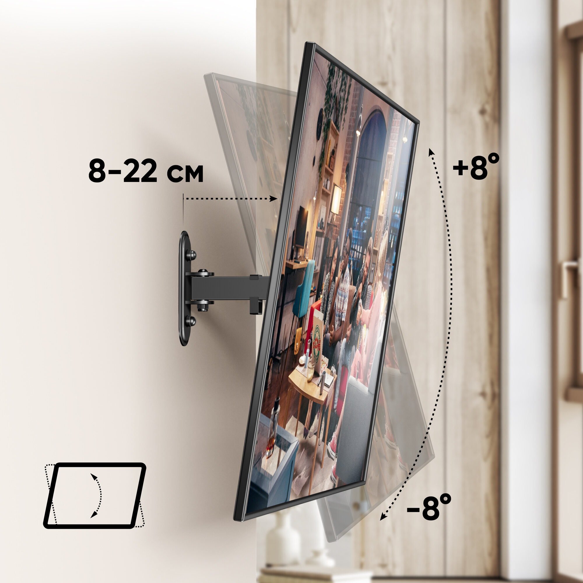 Наклонно-поворотный кронштейн для ТВ 10"-32" ONKRON R2 Black