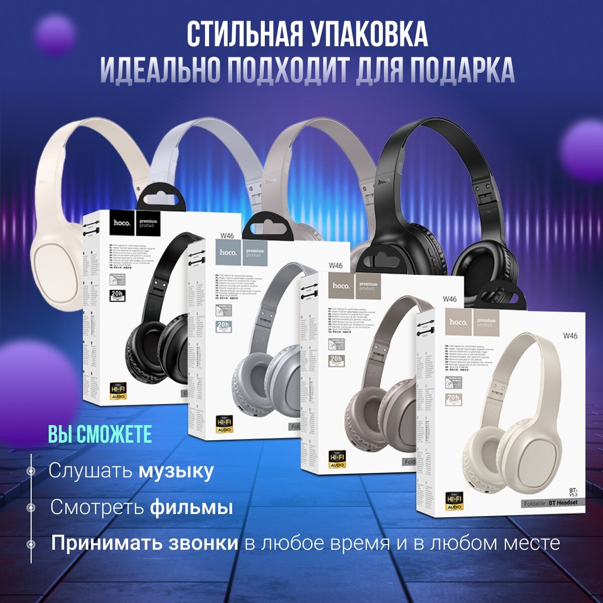 Наушники полноразмерные беспроводные Hoco W46 (Bluetooth) бежевый 1 320 ₽ Подробнее